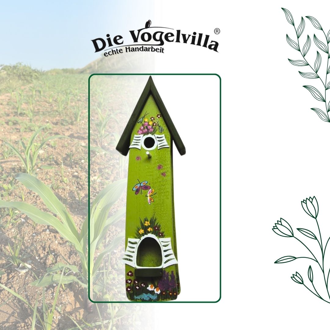 1. Kombiniertes Vogelhaus „Minivilla 2 – Gartenzauber“ (Kiwigrün)